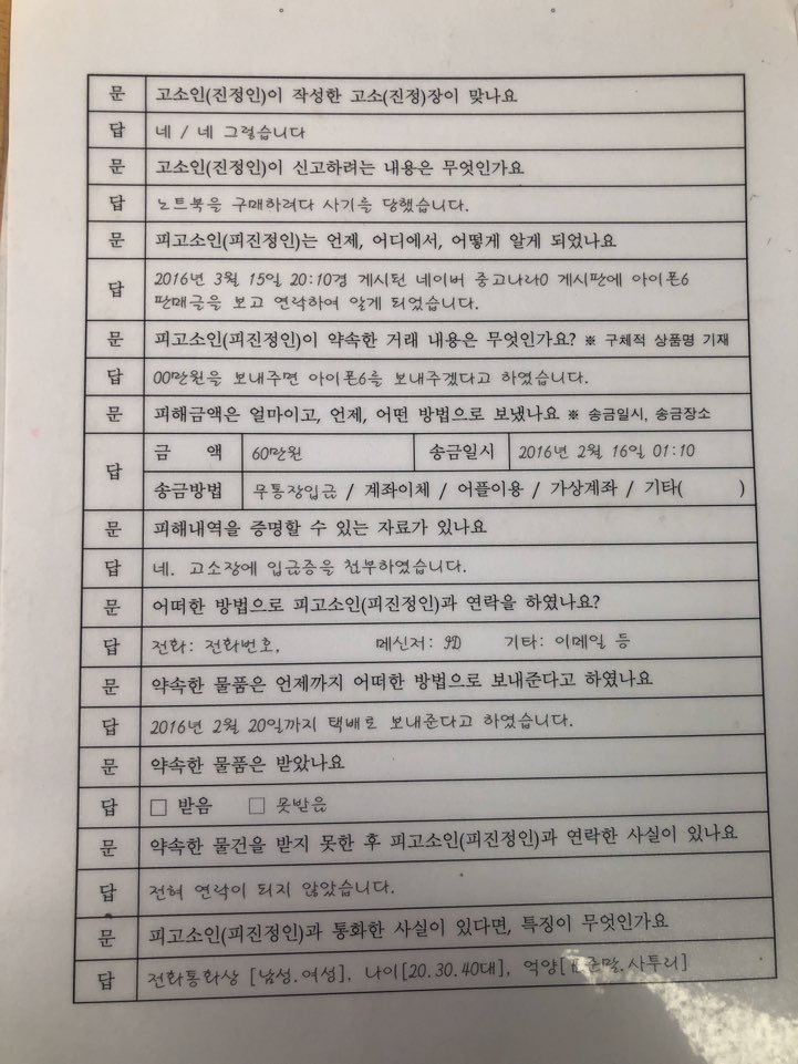 경찰서를 가기까지의 일련의 과정은 아래 블로그 링크에서 정리를 하였습니다. 실제로 몇 백만원을 처 맞으면서 배운... 행동양식이었고, 다행히 당한 사기 중 5번은 모두 돌려받았고, 남은 한 번은 진행중에 있습니다.