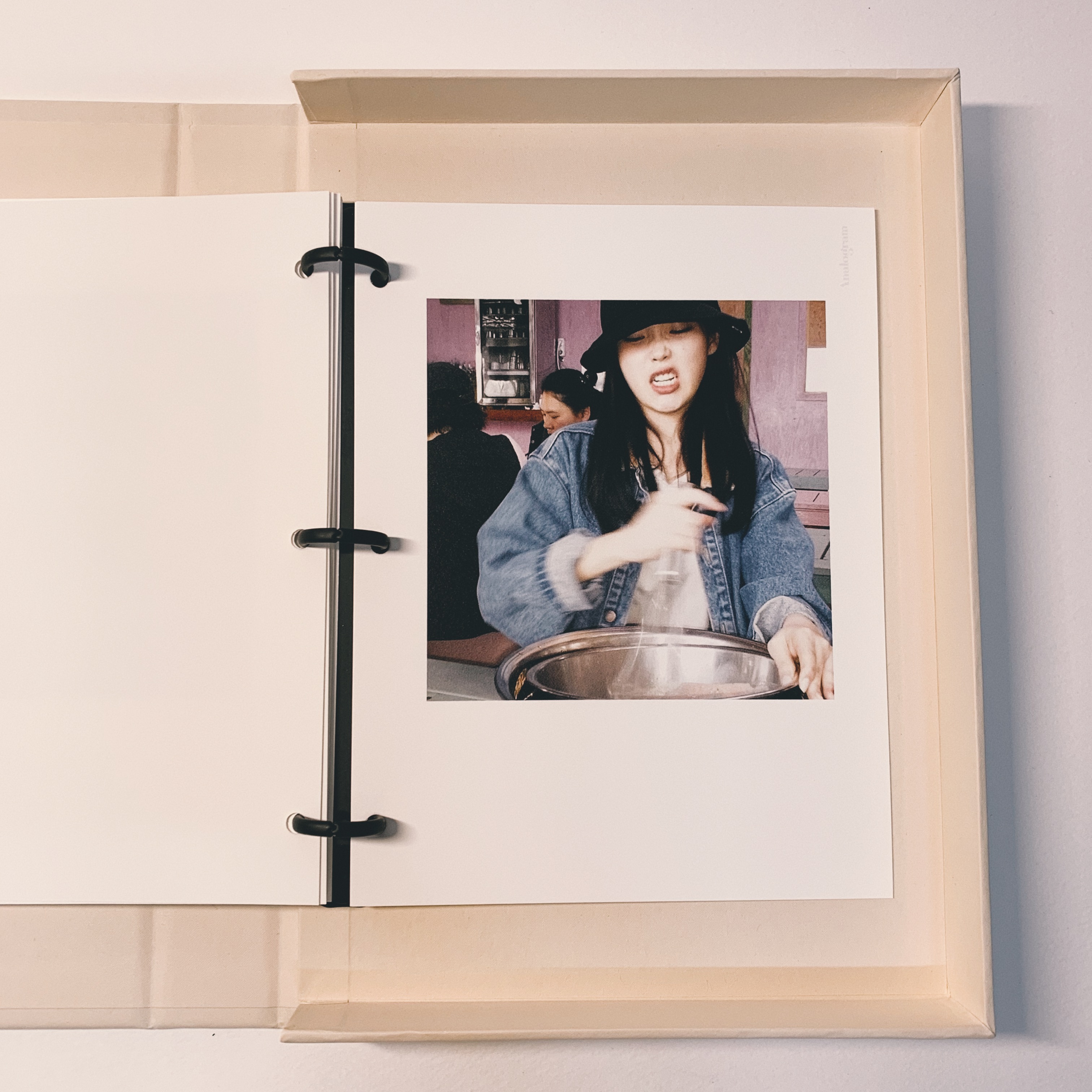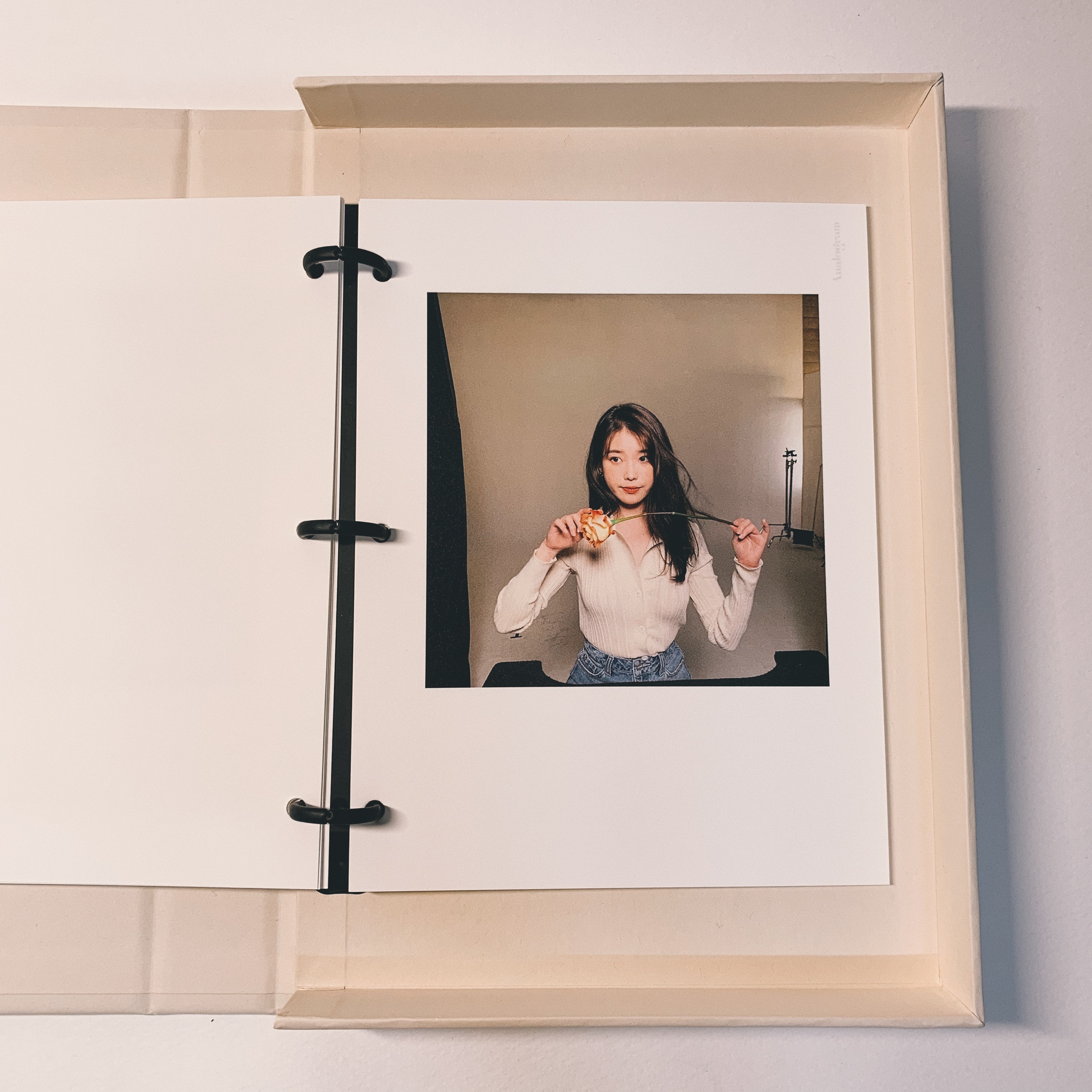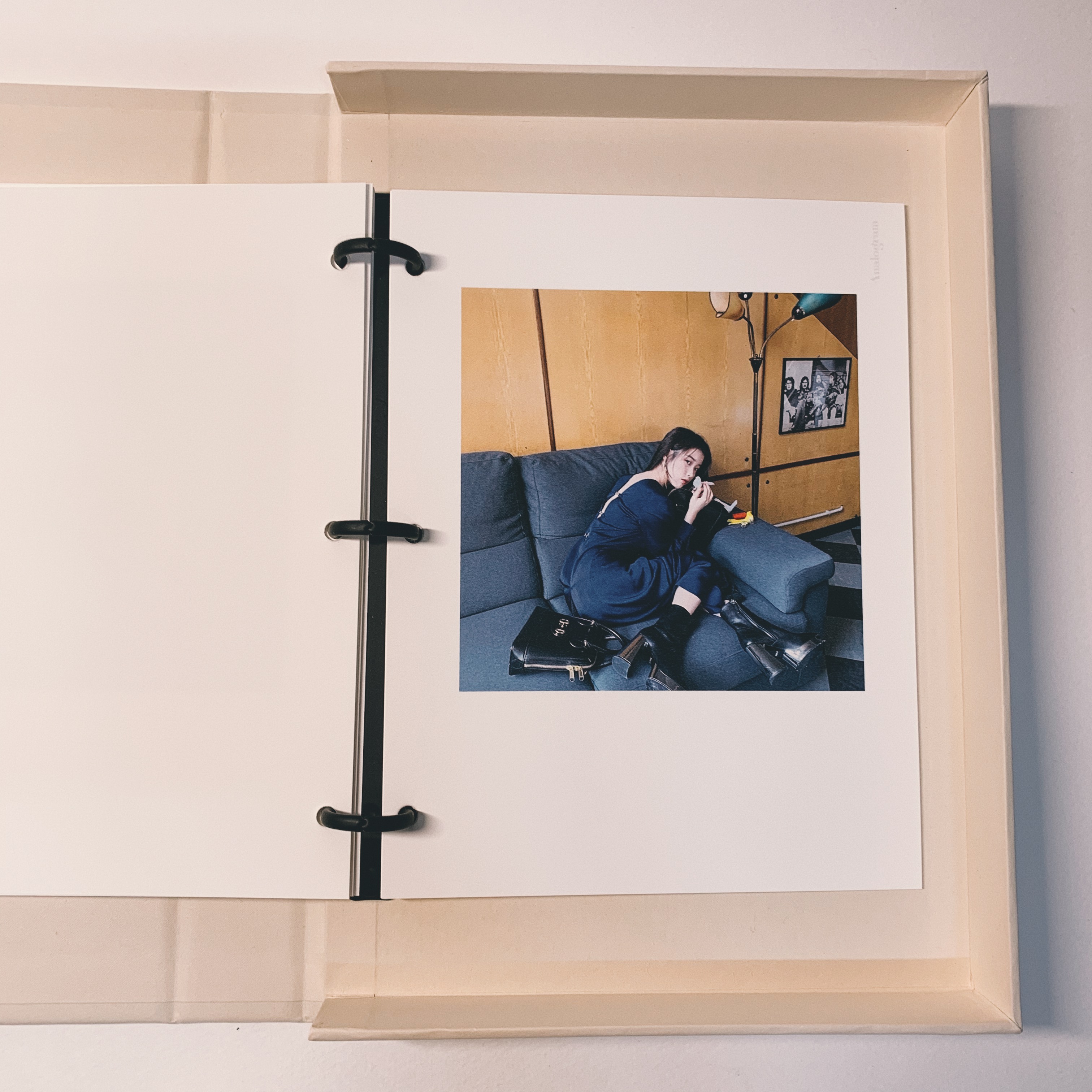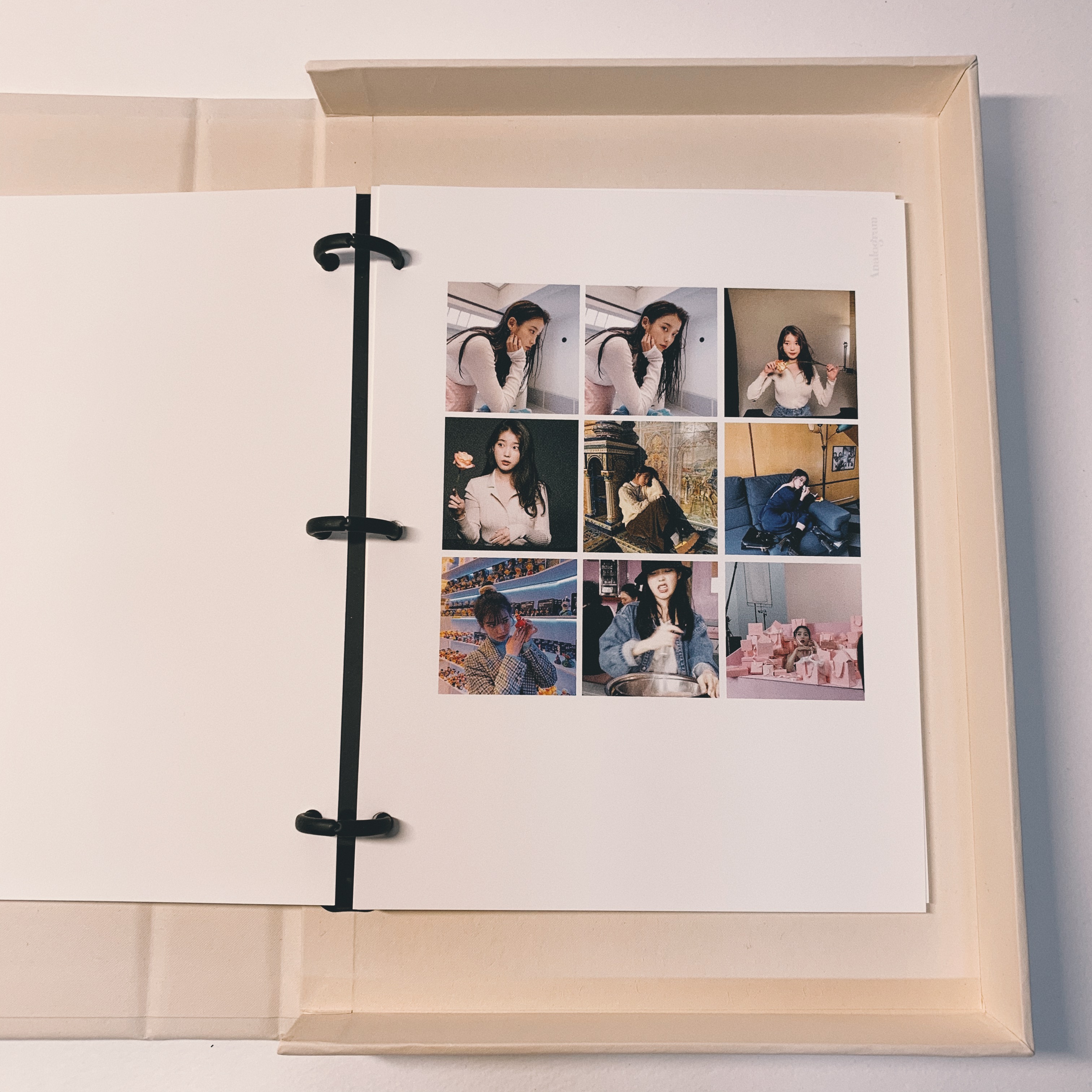 아이유의 인스타 닉네임인 이지금으로 이름을 변경해서 표지를 만들었습니다. 포토북의 왼쪽에는 품질 보증서를 딱 꽃아놓을 수 있는 주머니? 가 있습니다. 아이유 인스타는 다른 인스타보다 화보나 여러 비하인드가 많이 녹아있어서 개인적으로 그냥 앨범 굿즈보다 직접 제작하고 싶어서 이렇게 직접 만들어보았는데요. 개인적인 후기는 훨씬 만족스럽고 심심할 때마다 낙서도 하고 그림도 그리고 하면서 재밌게 쓰고 있습니다. (참고로 아날로그램의 인화지는 엽서같은 종이재로 그림이나 펜으로 뭔가 적기 좋아요)