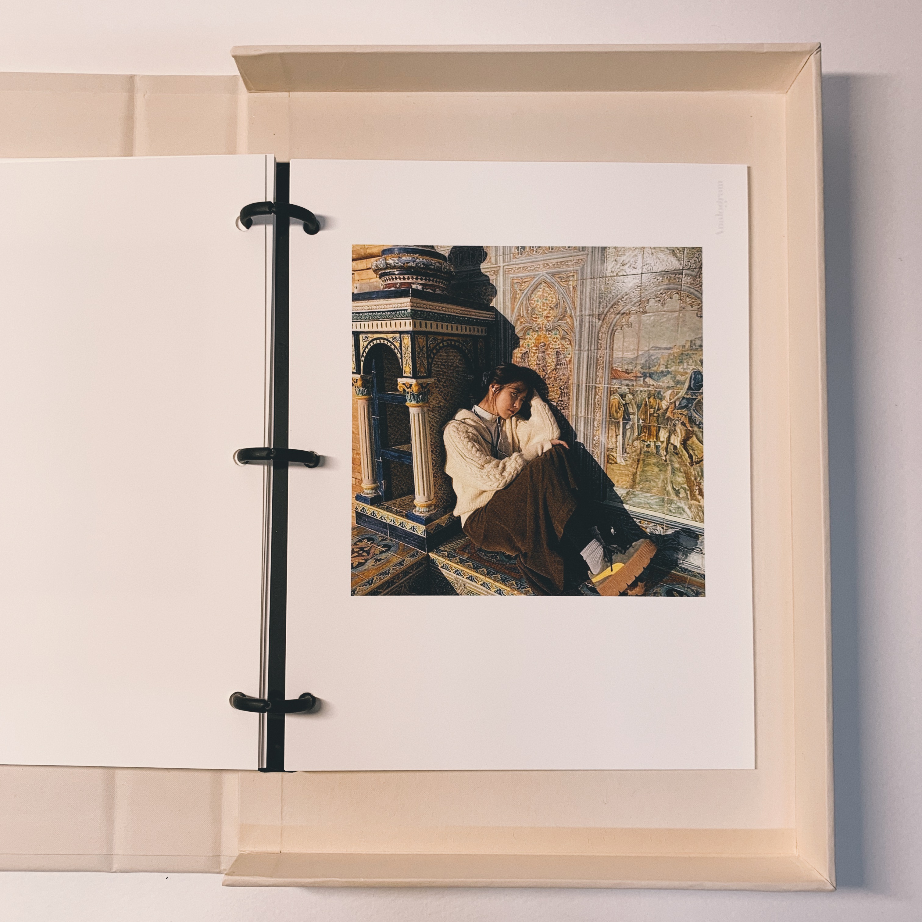 아이유가 여행 갔을 떄 사진인데, 여행 포토북으로도 참 추천할만한 것 같아요. 뒤에 배경이나 따뜻함도 종이재 특유의 성질때매 더 돋보입니다. 추가로 바인더링이라서 순서나 이런 것은 마음대로 변경이 가능하고, 엽서 같은 재질이다보니 중간에 꺼내서 책갈피나 집안 인테리어용으로 등등 사용 범위가 무궁무진 합니다.